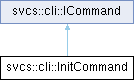 This command is responsible for initializing a new SVCS repository in the current directory or a specified location, setting up the necessary internal structure (e.g., the hidden .svcs directory). The class inherits from ICommand, ensuring it adheres to the Command pattern interface. It requires an event bus for communication and a repository manager to perform the actual initialization logic.